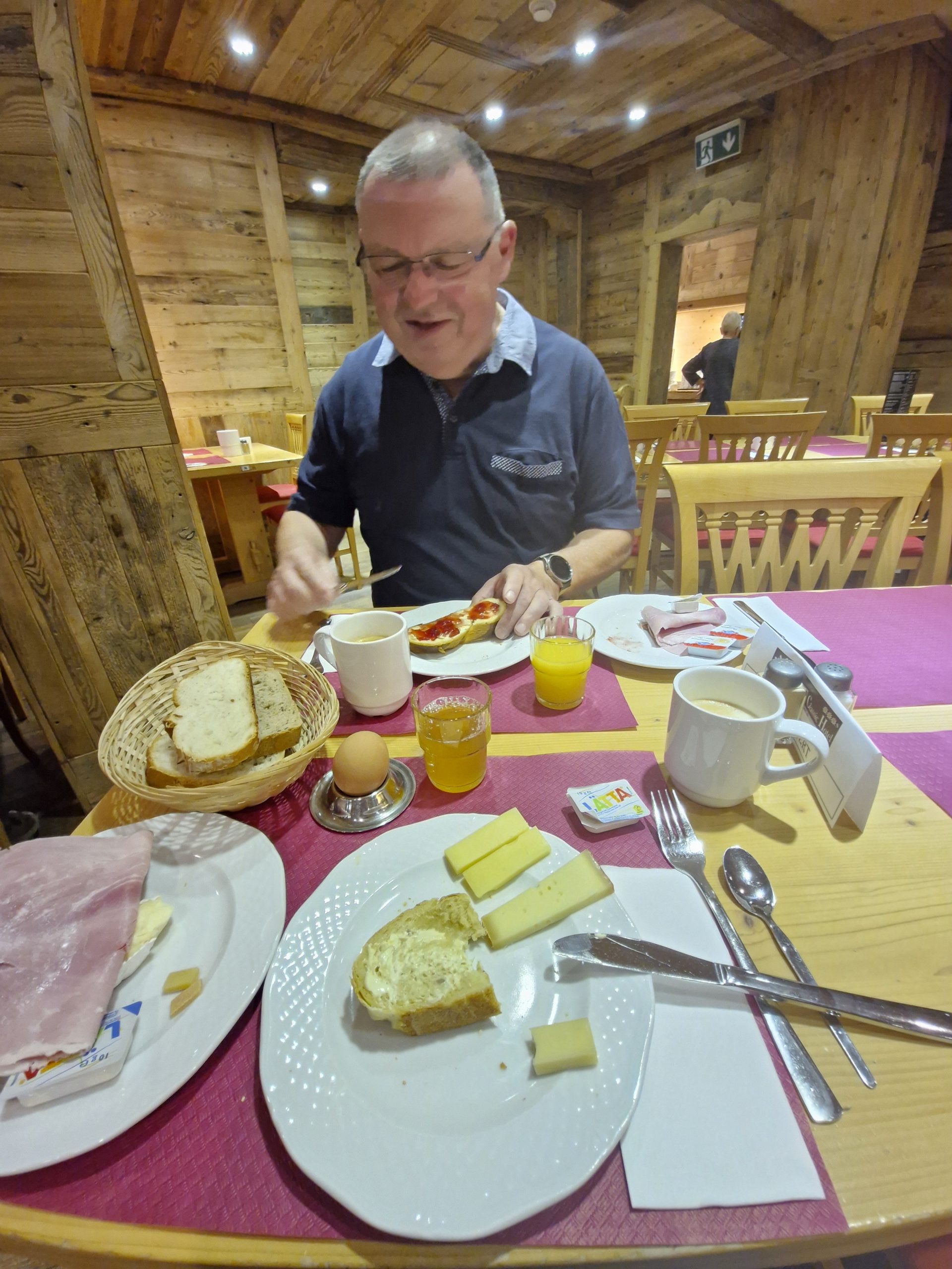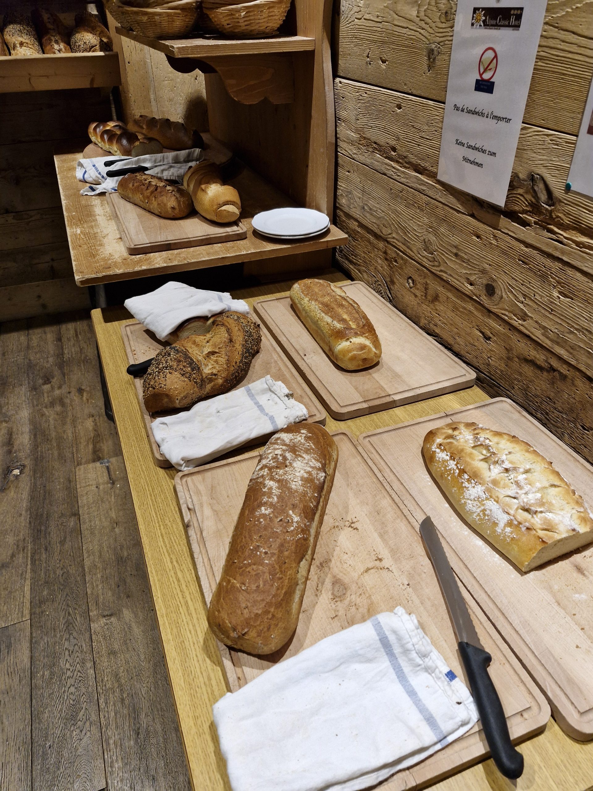 Die Verpflegung im Hotel war super und gut organisiert. Die Auswahl beim Frühstück war groß und frisch. Vermisst habe ich am ersten Tag die Brötchen zum Frühstück. Aber wir hatten dann viel besseres, jeden Tag eine große Auswahl an frisch gebackenem, teilweise noch warmem Brot. Also besseres Frühstück als hier habe ich bis jetzt nirgends bekommen. Das Abendessen war meistens Buffet mit 3-4 Gerichten und ein Salatbuffet. Einen Abend gab es Raclette, also nichts für mich. Aber es gab ja auch wieder frisches Brot und gute Wurst/Schinken also waren alle glücklich. Für alle die gerne Käse essen war die ganze Verpflegung ein großer Traum.