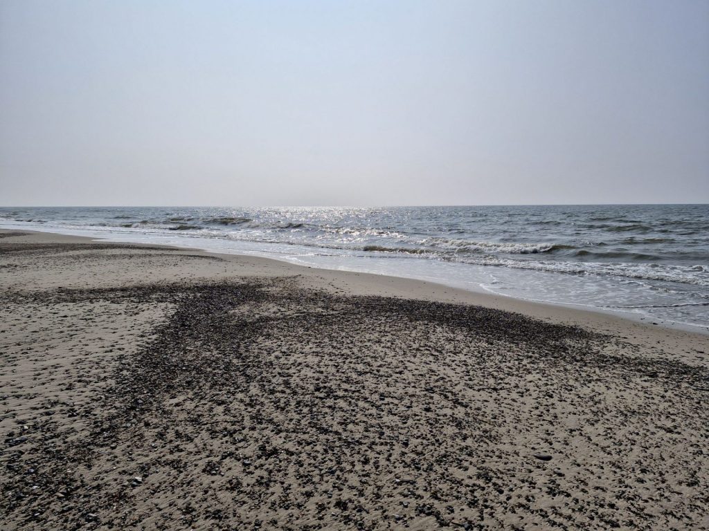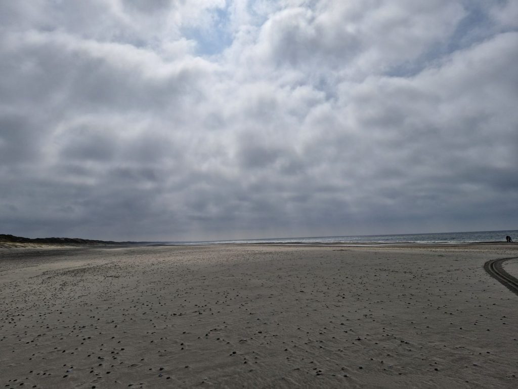 Und pünktlich zum vorhergesagt Zeitpunkt hörte der Regen auf. Also noch schnell ein bisschen Kuchen besorgen, Kaffee trinken und wieder an den Strand.